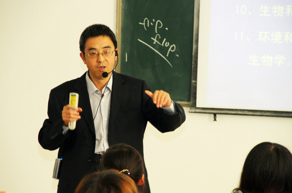 焦成瑾师专毕业工作不久,当他面对一双双来自农村那略带胆怯而信任的求知目光时,他为按部就班的实验教学工作而感到不安。他的脑海里曾一度重复着同一句话:“走出去,哪怕自己没有出息,也要寻找一条让学生有出息的道路;如果不能给学生一片就业的蓝天,也要设法为他们插上一对搏击长空的翅膀。”他认为一个老师即使再爱岗敬业,再讲究育人技巧,如果对自己的专业领域不熟悉,课讲不清楚,那么学生不信任的目光就不会消失。当年在自己英语底子极为薄弱的情况下,克服家庭和工作中的种种困难发奋复习英语,攻读学位。外出的学习,使他的专业知识更加扎实,对如何搞研究有了进一步的理解。返校后,他并没有一门心思的做实验、搞研究,而是全身心的投入到教学当中。他现在能比较灵活的处理各种教材为课程所用,也知道如何更好的帮助学生确立专业知识体系。虽然有个别学生不喜欢听课,但当他激情澎湃的讲授他最熟悉的内容时,心不在焉的学生几乎没有。