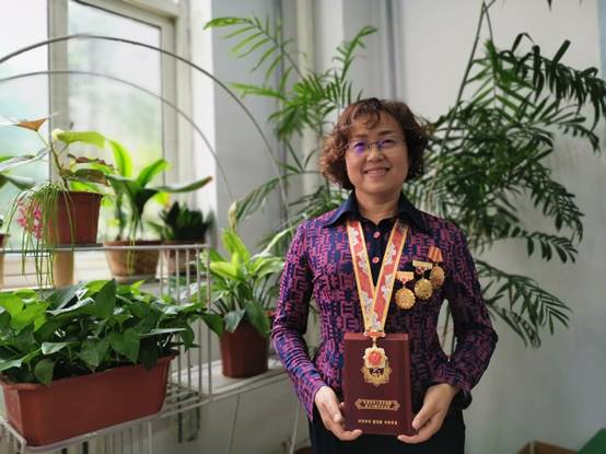 2019年9月30日上午,天水市人大常委会副主任、市总工会主席蒲朝晖,市总工会党组书记、常务副主席郭世文一行代表市委、市政府专程来beat365官方网站看望了全国劳动模范呼丽萍教授,蒲朝晖代表市委、市政府向呼老师颁授了庆祝中华人民共和国成立70周年纪念章,学校党委副书记师平安同志、校工会领导和生物学院班子成员、师生代表参加了颁授仪式。