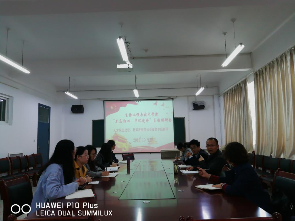 根据学校“不忘初心、牢记使命”主题教育工作安排,学院于10月9日下午在414会议室召开以“人才队伍建设、转型发展与社会服务”为专题的“不忘初心、牢记使命”主题调研会。学院十余位教师参加了此次调研会,会议由院长王廷璞主持。