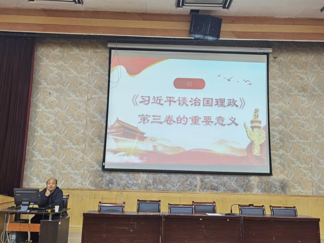 11月5日下午,学院邀请校党委常委、统战部部长崔亚军教授为全体教职工和部分学生做了“学习《习近平谈治国理政》第三卷”的专题宣讲报告,会议由学院党总支书记马纲主持。