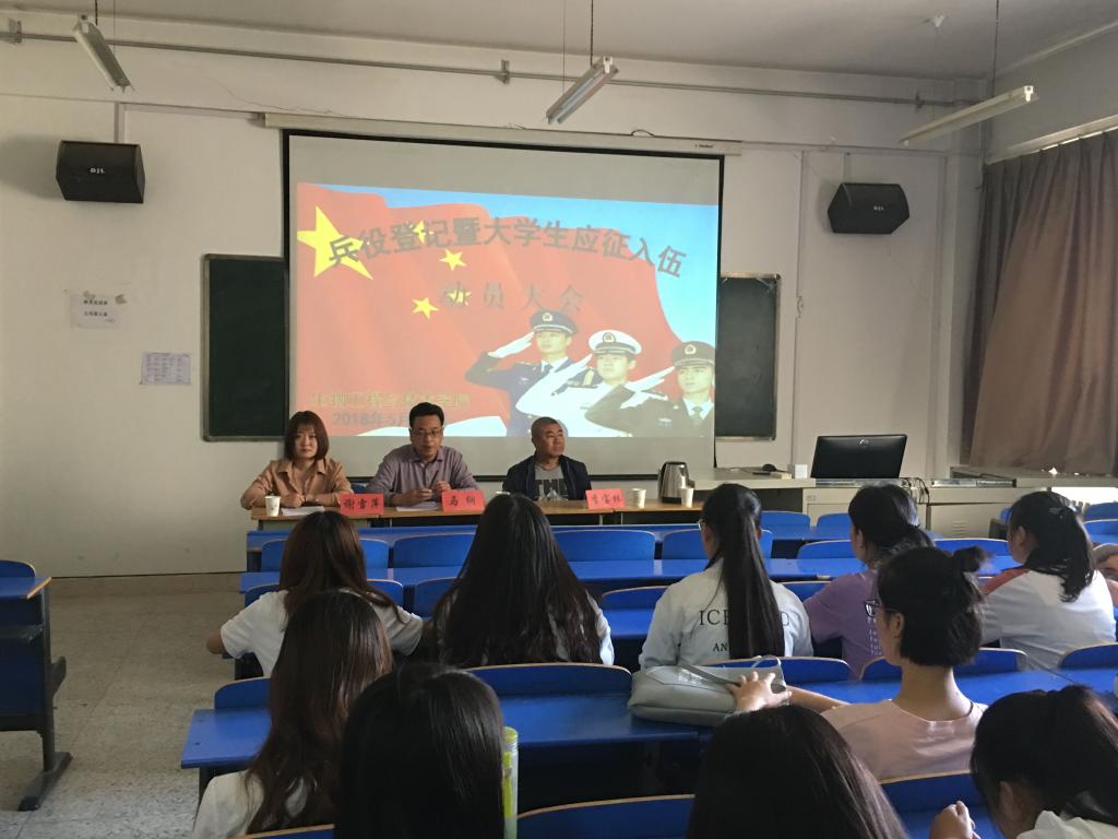 为贯彻落实国家征兵政策,根据学校指示做好2018年大学生应征入伍工作,生物学院于5月24日下午在3号实验楼414教室举行了2018年兵役登记暨大学生应征入伍动员大会。