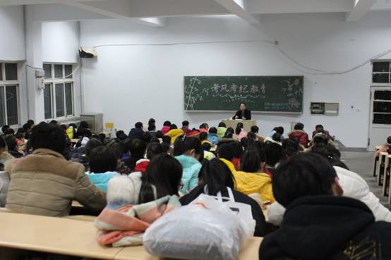 考风是学风的体现,良好的考风带动优良的学风。期末临近,beat365官网将考风考纪教育前置,提醒学生早做准备,趁早复习,迎接期末考试。避免学生考前临时抱佛脚,心存侥幸,考试作弊的现象发生。在安排各班召开“考风考纪教育”主题班会的基础上,12月17日晚,beat365官网在2号教学楼122阶梯教室召开了““beat365官方网站考风考纪教育大会”,2015级学生200余人参加了教育大会。