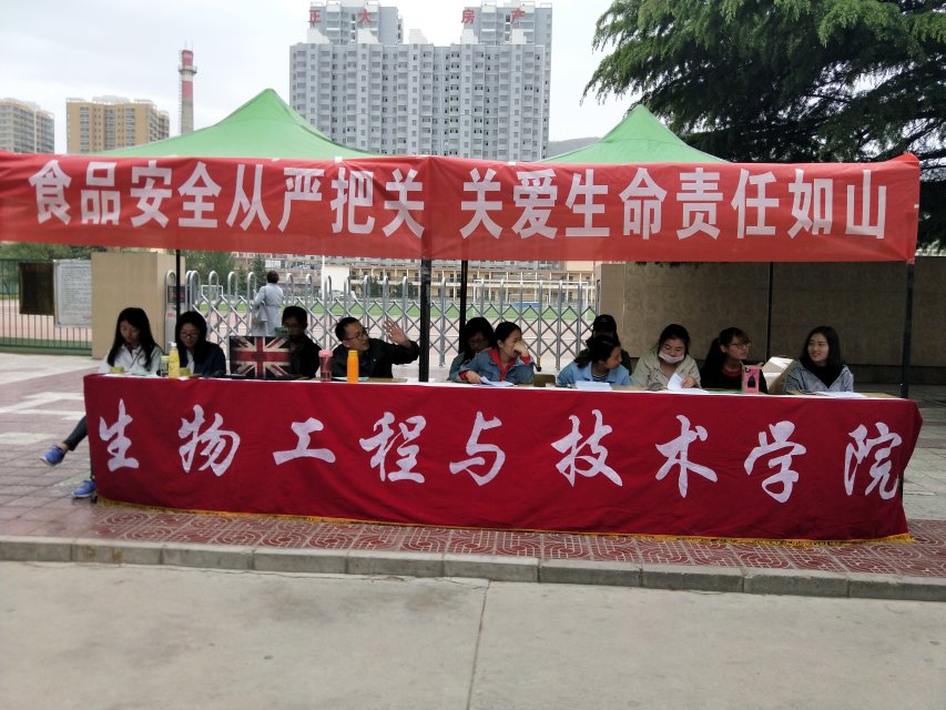 此次活动15食品班同学全员参与,在学院团委的帮助下,根据分工不同,积极完成各项准备任务,合理规划,本着科学合理、严谨易懂和务实便民的态度设计相关的问题和知识,并在活动期间积极详细的给师生讲解食品有关的安全事故、事故引起的危害、如何避免危害以及生活中应注意的各项常识,在全班同学的通力合作下此次活动取得圆满成功。