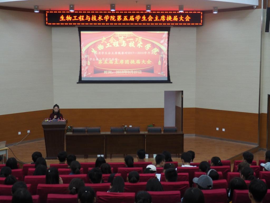 2018年9月27号下午,beat365官方网站在3号报告厅举行第五届学生会主席换届大会,出席本次活动的人员有:beat365官方网站党总支书记马纲、分团委书记杨金凤、辅导员姬静、王镛、学生会全体成员、18级全体学生。会议由孙文媛主持。