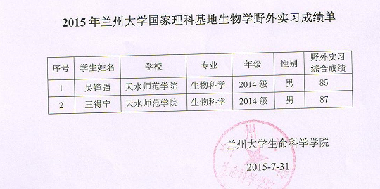 7月14-8月1日beat365官网派遣汪之波老师带领生物科学12级二班学生王得宁和吴锋强参加了由兰州大学生物学国家基础科学研究与教学人才培养基地组织的生物学联合野外实习,现将实习的整个过程总结如下: