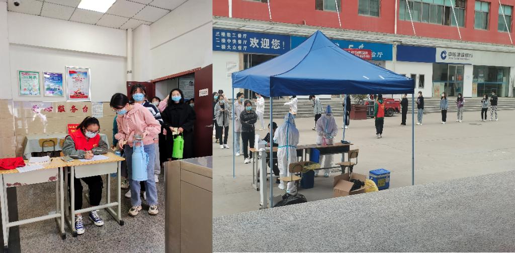 “请大家排好队,不要心急”“下楼做核酸时,外面下雨注意保暖”这些暖心的话语在耳边在手机屏幕上一遍一遍的出现,让这本来平淡的一天增添了一丝暖意。在核酸检测采样点,她们认真井井有条做好现场的秩序维护工作,耐心引导同学们提前打开健康码,并按照“一米线”的防控原则,引导着排好队、依次进行核酸检测采样。虽然工作时间长、工作强度比较大,但她们都迎难而上,无一人有抱怨情绪。“我们是志愿者,我们要全力以赴完成工作,看到大家顺利完成核酸检测,筑牢疫情防控防线,我们也特别高兴,”她们坚定的说。