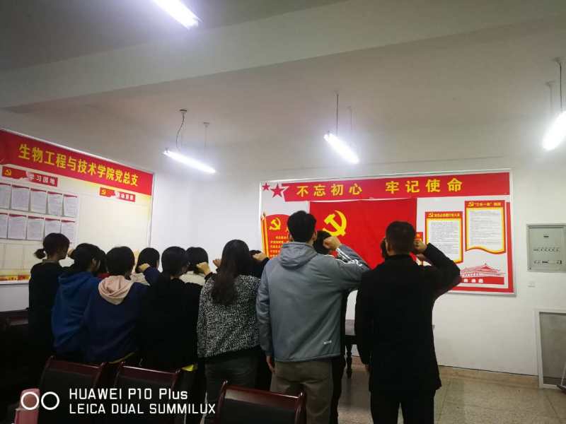 最后,支部委员王倩宁同志领誓,新入党的14名同志面对党旗做了庄严宣誓。