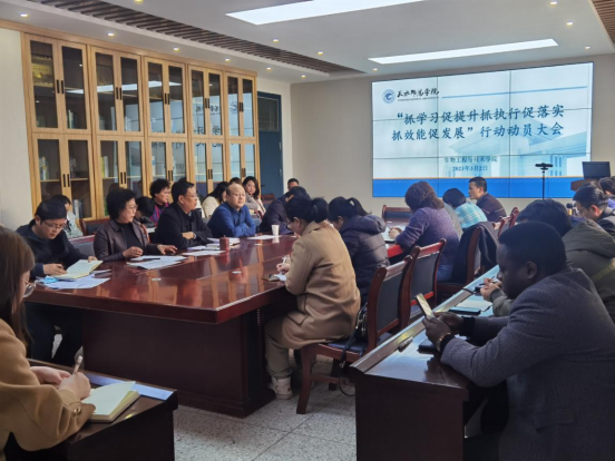 会议传达了学校党委下发的《<beat365官方网站“抓学习促提升抓执行促落实抓效能促发展”行动实施方案>的通知》要求,并从“党建引领行动”、“学科专业对标建设行动”、“课程质量提升行动”、“高级别科研项目破冰行动”、“学生就业创业促进行动”、“合作交流成果转化落地行动”、“安全履职尽责行动”、“教师发展提升行动”等8个方面就学院“三抓三促”工作进行全面部署。