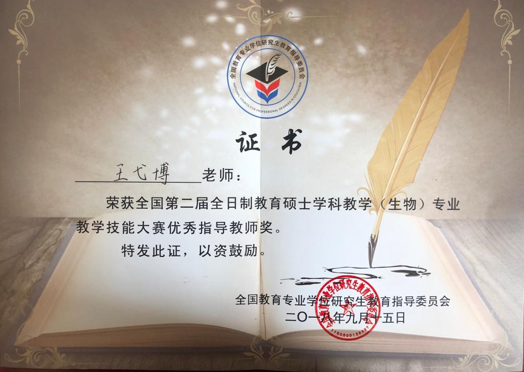经过激烈角逐,beat365官网2017级教育硕士范瑶在众多参赛选手中脱颖而出,荣获大赛二等奖,王弋博老师荣获优秀指导教师。这是beat365官网beat365官方网站在全国教育硕士生物教学技能大赛上获奖的新突破,也是beat365官网教育硕士教学质量提升的体现。